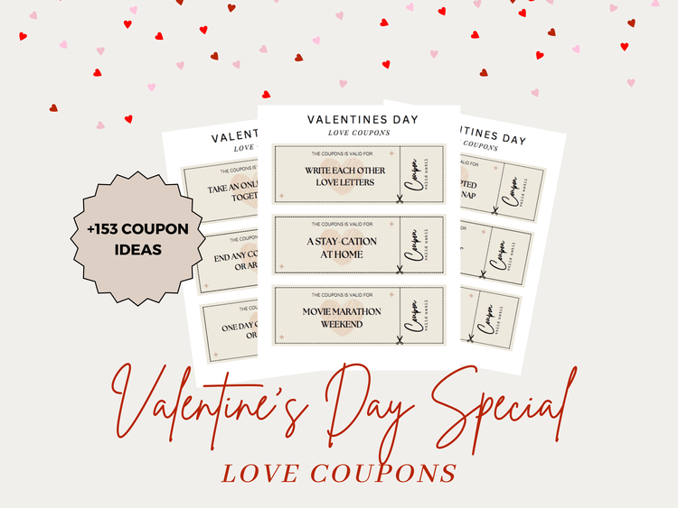 Celebrate your love this Valentine's Day with a unique and personal gift - a set of love coupons! Each coupon is beautifully designed and promises a special treat or activity for your loved one. Whether it's a night of their favorite movie, a home-cooked dinner, or a relaxing spa day, these love coupons are the perfect way to show how much you care.